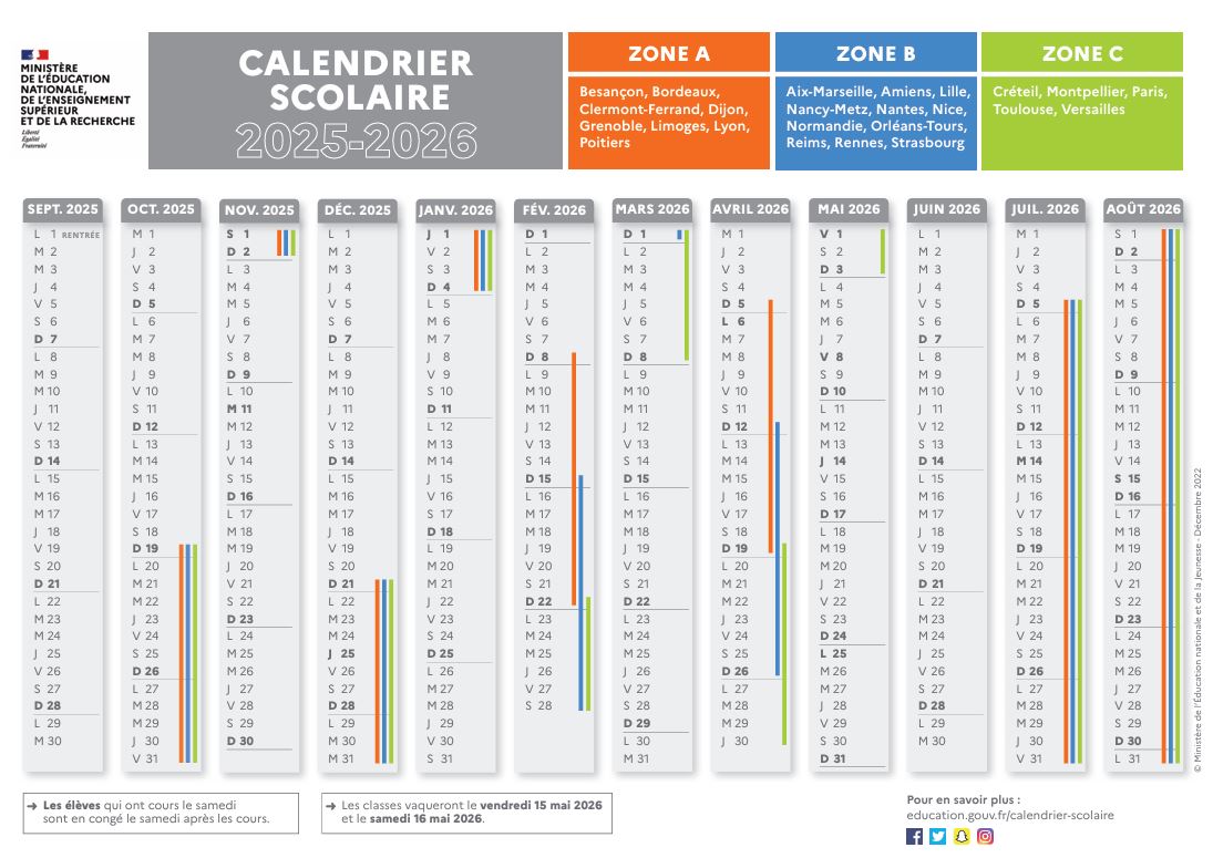 Il s’agit de la Zone C, dans laquelle on retrouve les académies de Créteil, Montpellier, Paris, Toulouse et Versailles.
